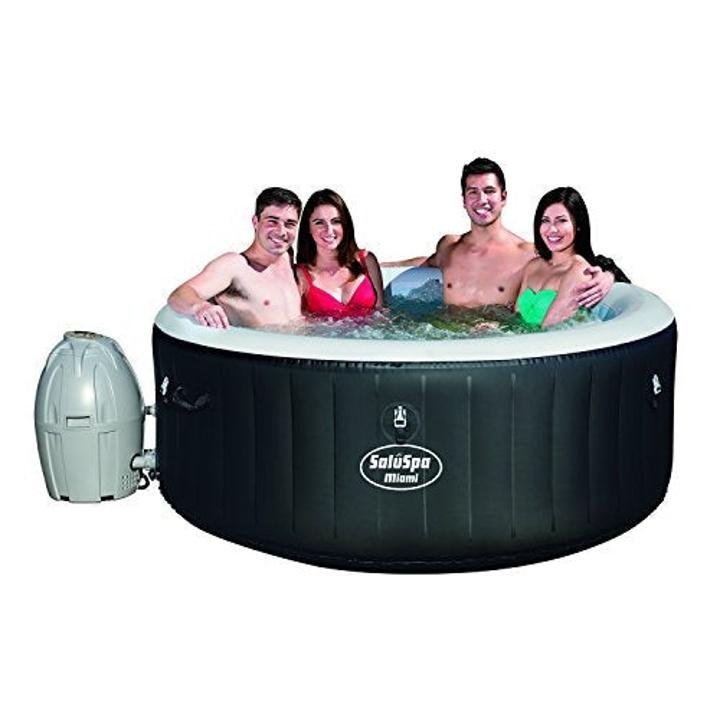 $65.99Description Brand: Bestway Color: Black Features: Enjoy the ultimate spa experience: receive total relaxation when you slip into this soothing portable hot tub after an exhausting day. 120 bubble jets soak sore muscles for a luxurious treat. Dimensions: 71′ W x 26′ H | Inner Size: 52′ W Operate from…