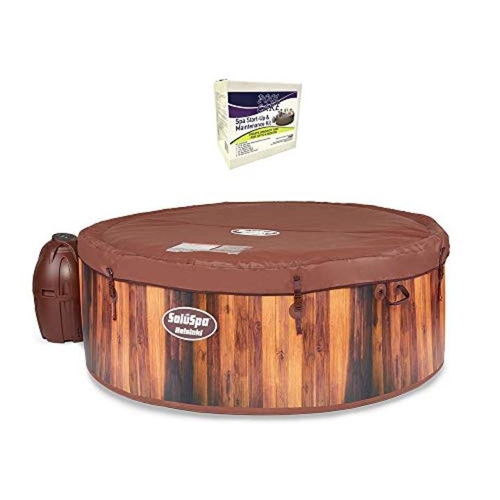 $75.99Description Brand: Bestway Features: Bundle includes Bestway SaluSpa Helsinki AirJet 7-person hot tub, cartridge filter pump, ChemConnect chemical dispenser, 2 replacement filter cartridges, hand inflation pump, repair kit, ground cloth, spa cover, and a 6-month chemical care kit Relax at the touch of a button with the SaluSpa hot tub’s…