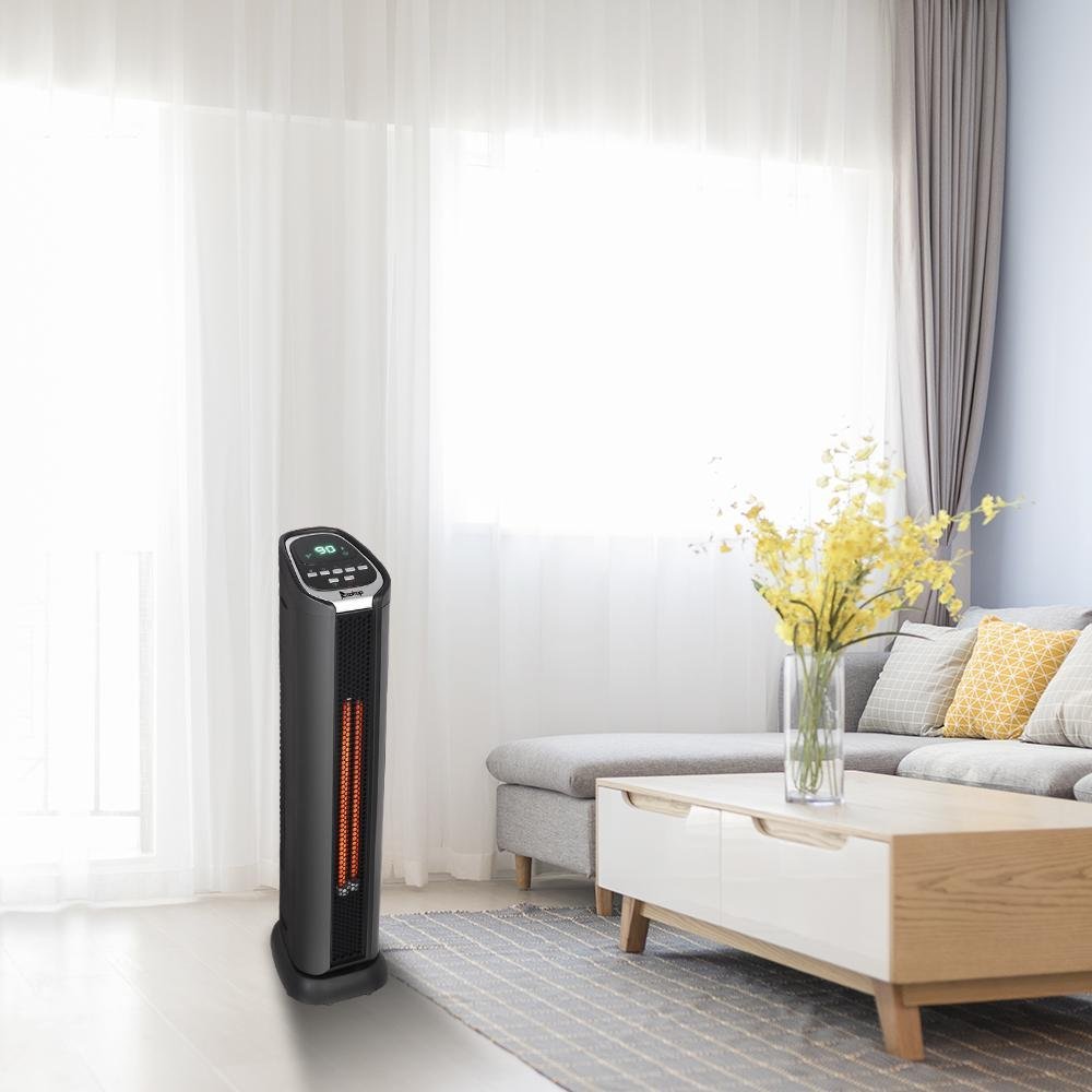 【AUTOMATIC TEMPERATURE CONTROLLED】 – The a ceramic space heater will automatically cycle ON&OFF to maintain the consistent temperature according to its thermostat setting and the room’s ambient temperature. With the auto thermostat, thereis no need to worry about the overheat & being a wake up by the hot temperature at night. This ceramic tower heater will provide you a peaceful sleep & a sweet dream.