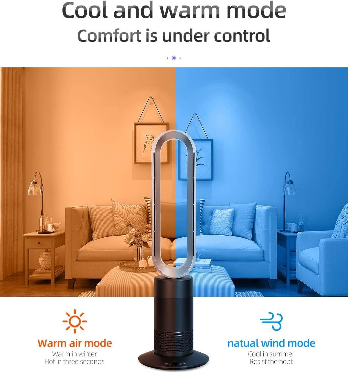 - : *The Ceramic elements has high conversion of heating and quickly heats in 3s. So that the fan supplys stable and constant warm airflow to comfort you. *Intelligent thermostat monitors and maintains the room at 77-86°F.So there is no wasted energy. 1~10 fan speeds of cool mode power is only 35W max, Energy Efficiency Grade 1 .