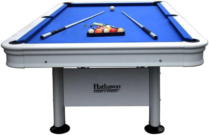 Alpine 8-ft Outdoor Pool Table with Aluminum Frame and Waterproof, UV-Resistant Felt – Includes Accessories, White