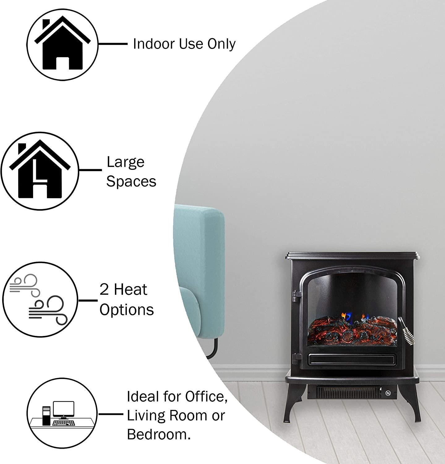 - FOR LARGE ROOMS: This powerful 1500 Watt fireplace stove heater is recommended for large-sized rooms up to 1600 sq. ft.
