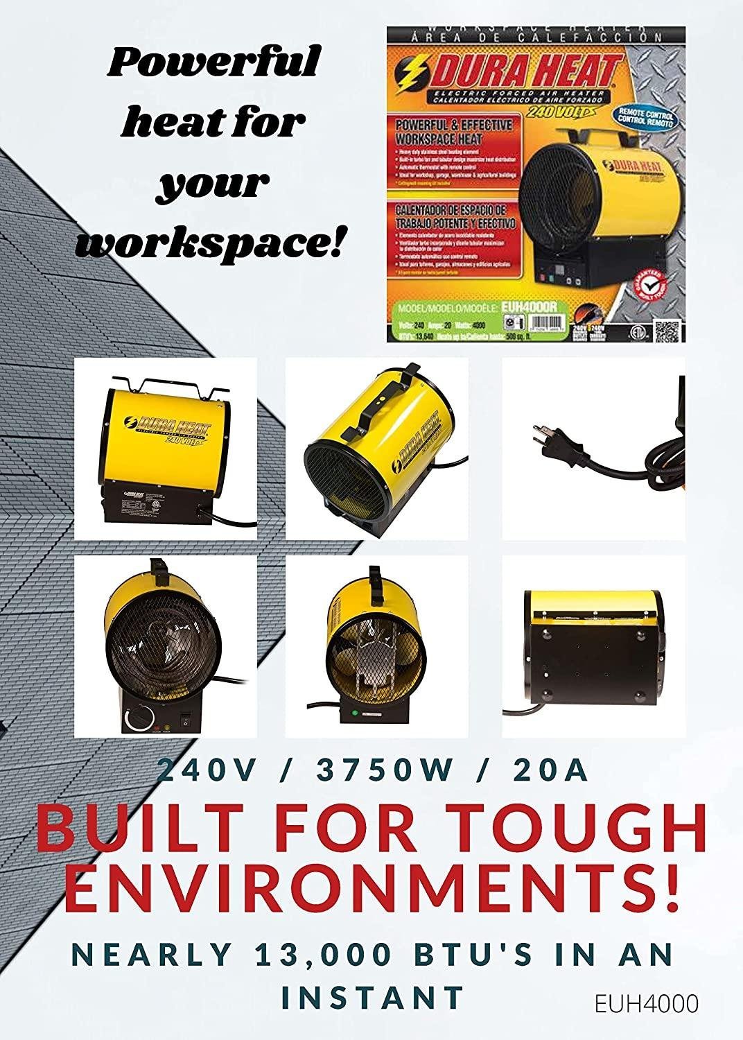 Dura Heat EUH4000 4000W Electric Forced Air Heater, Length: 10.75in, Width: 8.35in, Height: 13in , Yellow