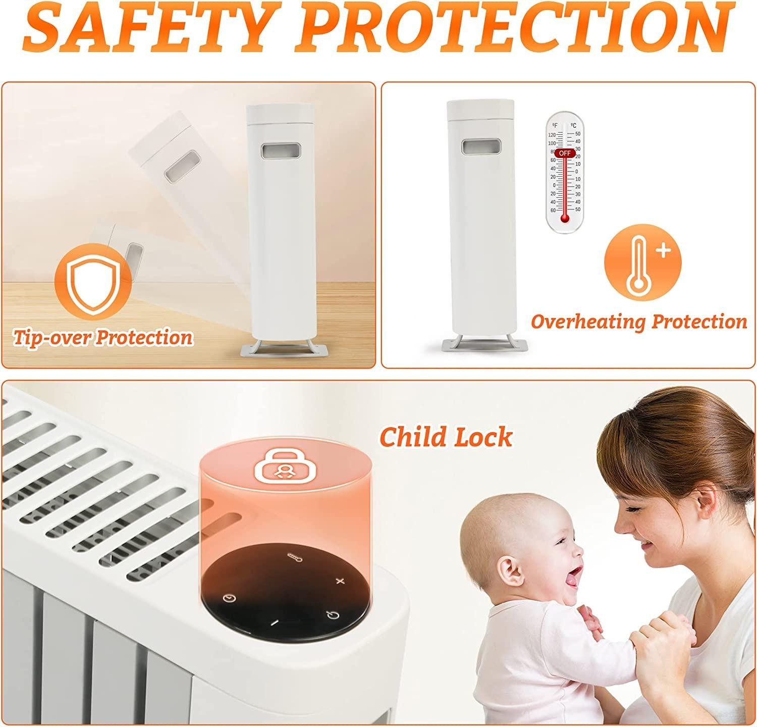 - 【Quiet & Comfortable】Adopting the principle of natural air convection heating, no fan ,ultra-quiet, no light during operation,perfect heater to use when sleeping,protect your sleep quality.And also,it will not make the space too dry,friendly to your skin and eyes.