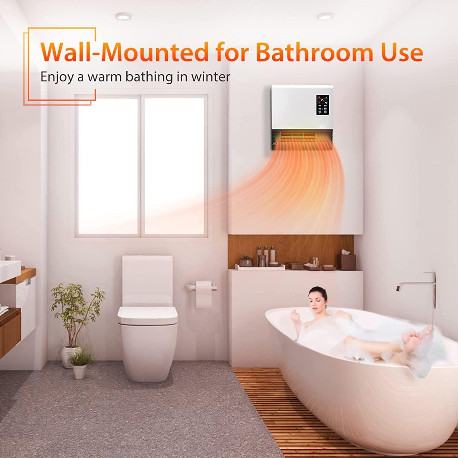 - Quick and Balanced Heating; The bathroom heater is 1500W, which can cover average-sized rooms as large as 500 sq;ft when used as a supplementary source of heat; With built-in turbo fan and quartz tube, the room heater provides embracing heat for whole room more quickly and evenly; Also, it can help natural cross-convection in the room in winter