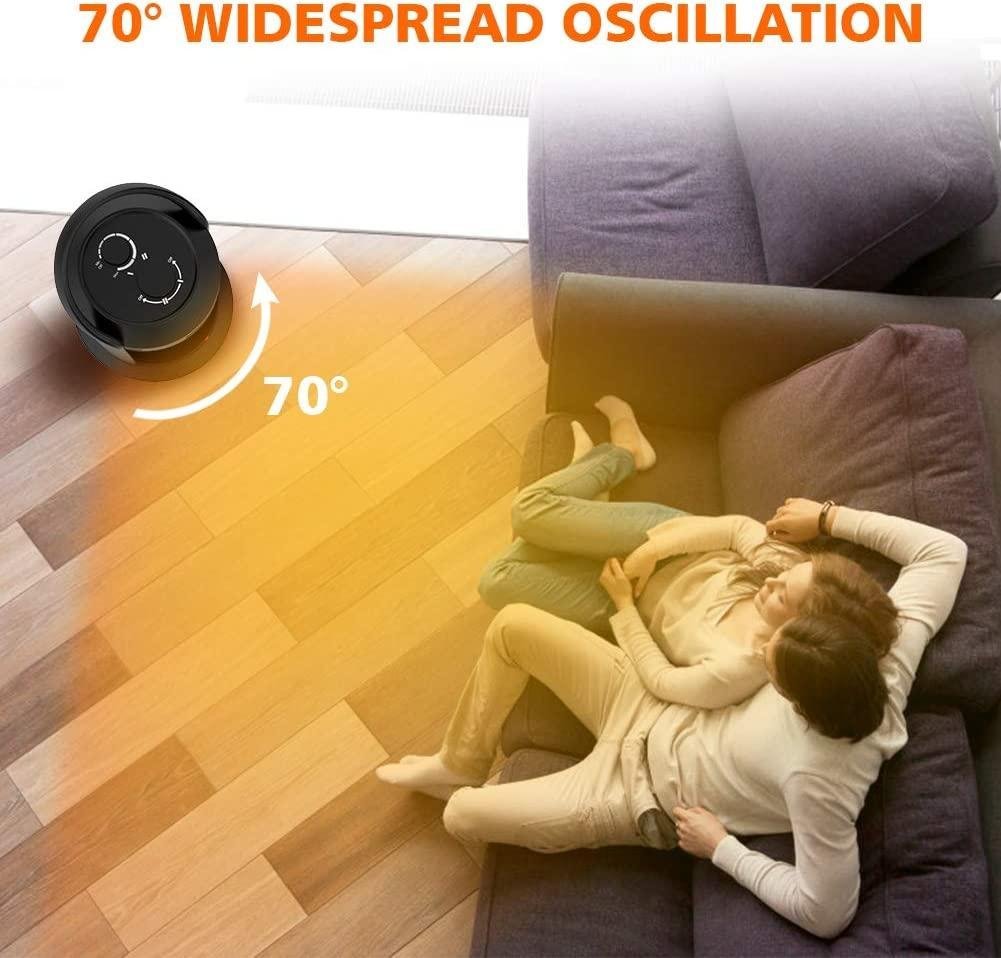 - [Oscillation & Portable] – Electric infrared heater has an oscillating function like a fan, and you and your family will feel the warmth it brings in many ways. And it is very lightweight, compact design allows you to easily carry to any place, bedroom, study, bathroom, office, etc.