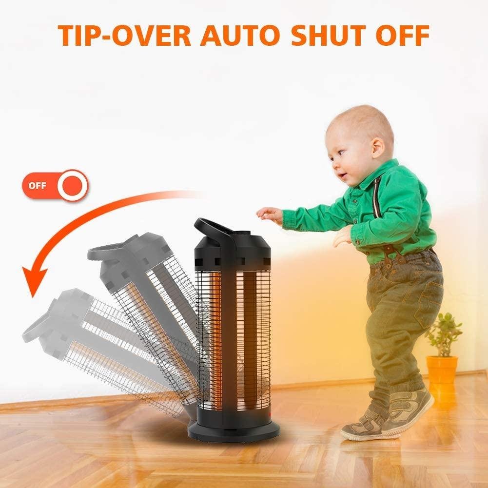 - [Tip-Over Protection] – This infrared tower heater is equipped with a shut-off safety feature. Once the heater is tipped over, an internal switch will automatically shut the heater off. Once the heater is restored to an upright position, the heater will reset. So don’t worry about kids or pets knocking over the heater!