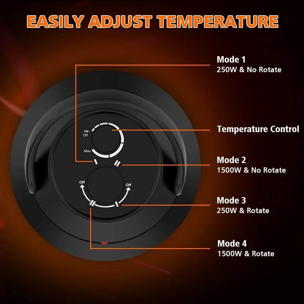 - [Instant Heating & Quiet] – This portable space heater with quartz Heating(1500W ultra-fast heating, strong energy saving, long service life), quickly make you warm embrace. Two temperature settings, 250-1500W adjustable, feel the warmest and most suitable temperature for you! No fan heating will not have noise to disturb your read, work or chat.