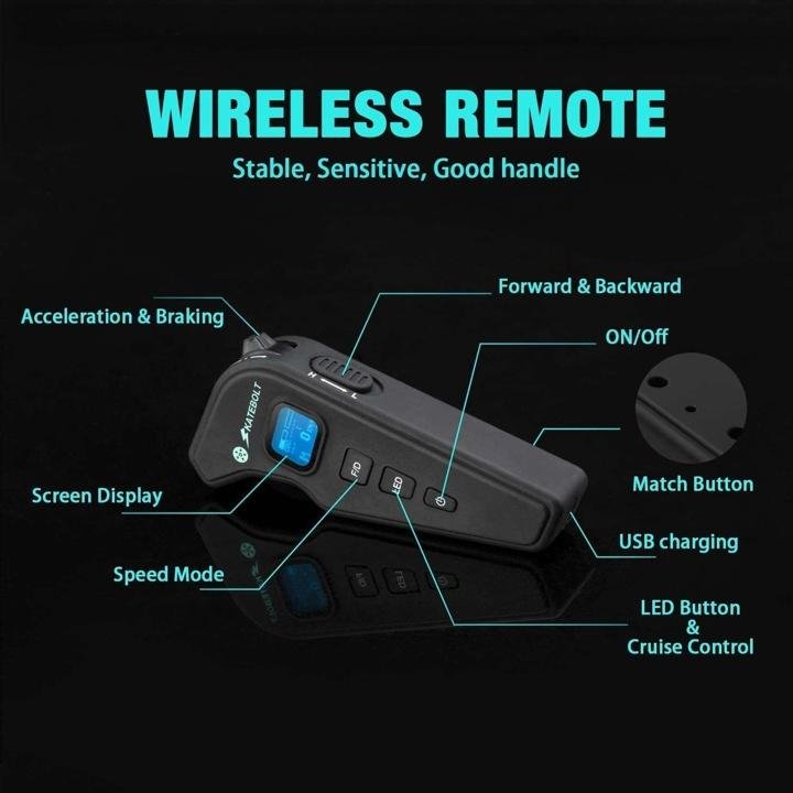 - Taillights for Safety – The powered skateboard is equipped with 2 red warning taillights. To ensure a safe riding in the dark street. They will keep blinking to warn any vehicles coming behind you when you hold the brake.