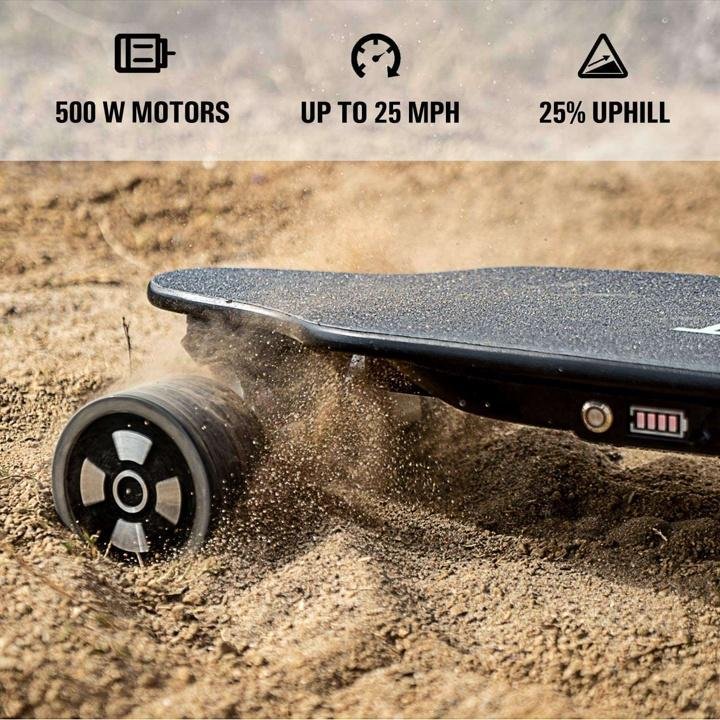 - Upgraded Tornado II – With upgraded 7500 mAh battery, Skatebolt Electric Longboard keeps cruising up to 21-24 miles in medium mode. With dual motors, its running speed goes up to 26 mph and it*s strong enough to climb a 25% steep hill.