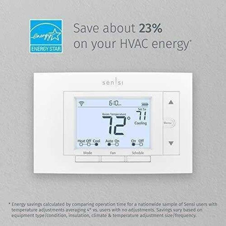 - SAVE ABOUT 23% ON HVAC ENERGY*: The ENERGY STAR certified Sensi thermostat helps you save on your HVAC energy costs, with features like geofencing, 7-day flexible scheduling, remote access and in-app system usage.