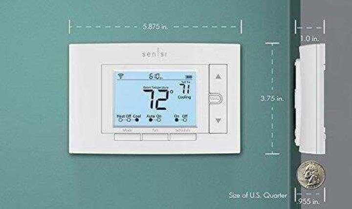 Binding: Tools & Home ImprovementRelease Date: 22-05-2017Details: From across the room or across the country, your Sensi Wi-Fi thermostat makes it easy to remotely control and schedule your home comfort – Anytime. Anywhere. Designed to work with the wires you already have, Sensi thermostat does not require a common wire (c-wire) for most installations, so it is compatible with the HVAC equipment in many homes in U.S. Canada. A c-wire is required for heat-only, cool-only and heat pump (without aux) systems, and for use with Apple HomeKit. Check to make sure it will work for you at sensi.emerson.com/compatibility . The intuitive app walks you through each step of installation with custom configured instructions, removing all the frustration and guesswork from the installation process, so you can be up and running in no time, no experience required. Put your comfort on your terms using location-based temperature control with geofencing or creating custom heating and cooling schedules with the flexible 7-day scheduling option with the ENERGY STAR certified Sensi thermostat. Both energy saving features you save about 23% on your HVAC energy usage so you can save money without compromising your comfort. Plus, Sensi integrates directly with Amazon Alexa, Apple HomeKit, Google Assistant and Wink home automation platforms. Connect to Amazon Alexa to control your home temperature with simple voice commands, or just ask Siri to set, raise or lower your home temperature when using Sensi with Apple HomeKit. Whats more, Sensi Wi-Fi Thermostat has been named the Best Value smart thermostat of 2018 by USA Todays Reviewed.com Energy savings calculated by comparing operation time for a nationwide sample of Sensi users with temperature adjustments averaging 4 degreeF vs. users with no adjustments. Savings vary based on equipment type/condition, insulation, climate temperature adjustment size/frequency. Based on survey results of 2120 respondents that purchased and installed a Sensi thermostat in 2018, approximately 70% reported installing in 30 minutes or less. Adding a common wire may impact installation time. Does not work with electric baseboard heat and some other systems. System requirements for mobile app: iOS – 10.0 or above Android – 4.2 or above (5.0 or greater to use the Geofencing feature).Package Dimensions: 8.1 x 7.3 x 3.1 inches