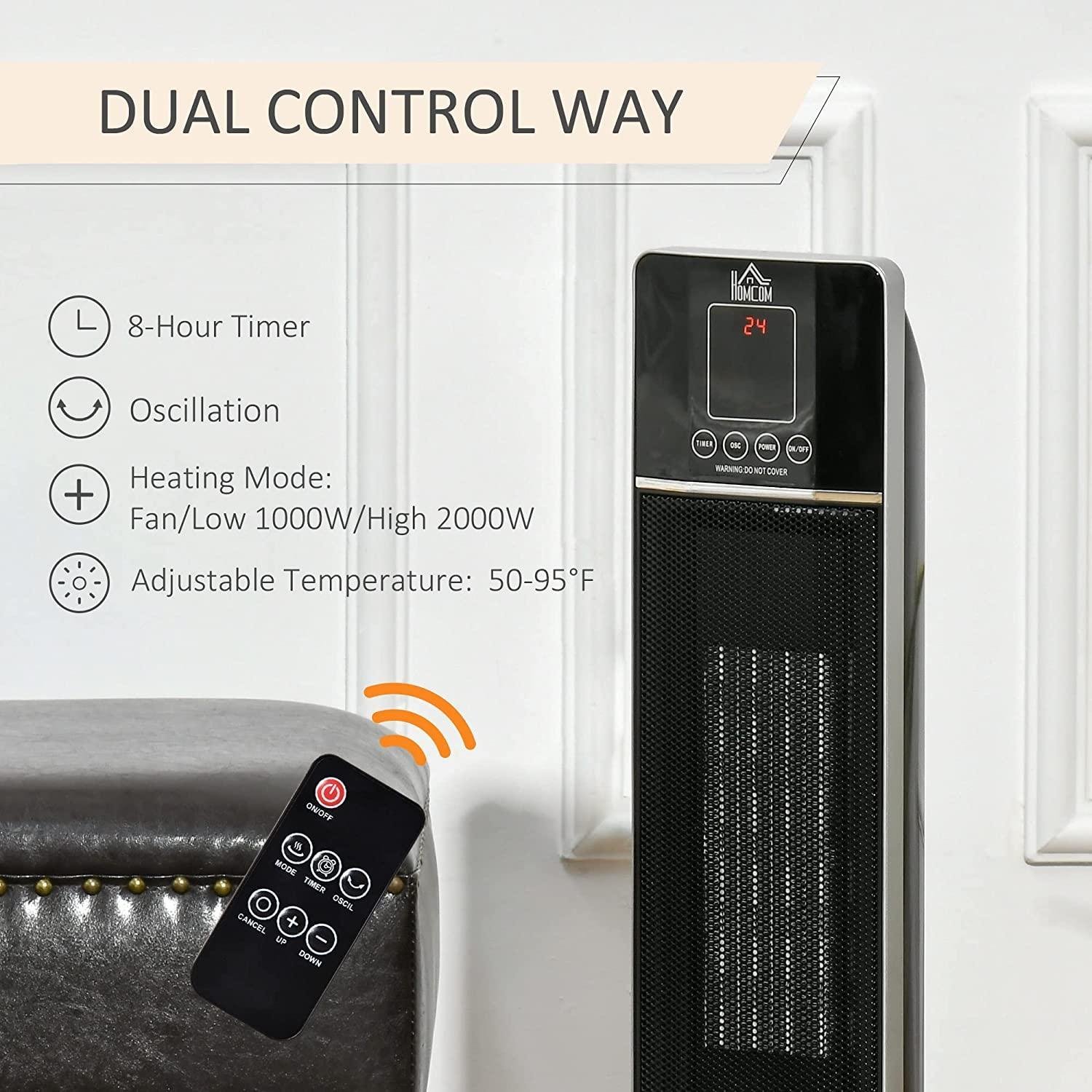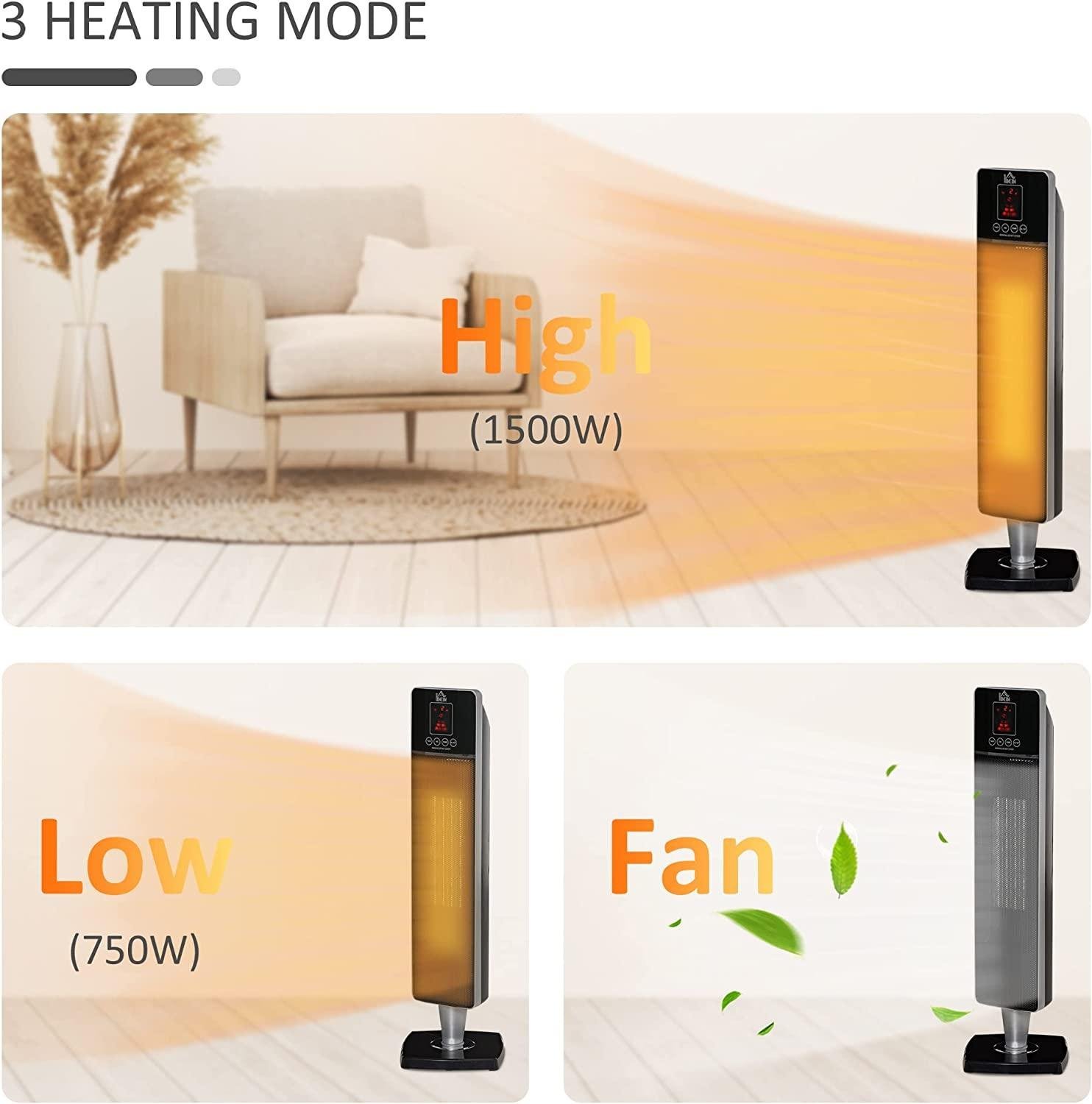 - TURN UP THE HEAT: ly customize the heating modes (Fan/Low Heat/High Heat) and temperatures with the remote control or top control panel. The LED screen of this floor heater makes it easy to read the temperature, mode and timer.