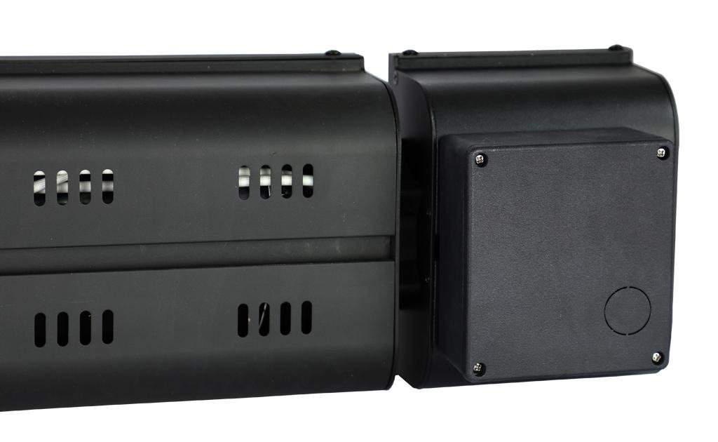 3000W: 208V and 240V models are available; Instant, Directional infrared Heat; Durable, CarbonIQ heating elements rated for 10,000 hours; High-output medium-wave type lamps; IP55 water-resistant rated for all weather conditions; Built-in electronic controller with High & Low heating modes; 24 Hour Timer; Handheld IR remote control with wall holder; 0° to 45° adjustable Wall/Ceiling brackets or Chain Mount (chain not included); Aircraft grade aluminum & stainless steel construction for maximum corrosion resistance; Heats Objects Not the Surrounding Air; Rated for indoor & outdoor applications; Imported To King Specifications; cETLus Certification for USA and Canada; 3-Year Limited Warranty on Fixture. 1-Year Limited Warranty on Carbon Lamps