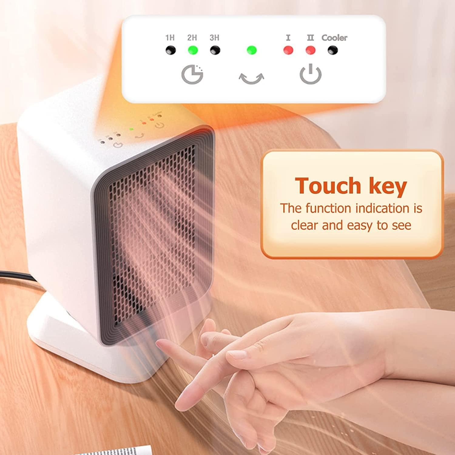 - 3 Gears Temperature Adjustment: The desk heater has cold and warm dual mode, and 3 gears temperature can be controlled ly. With touch button, the heater can be adjusted with light touch, which is simple and convenient, and each function indication is