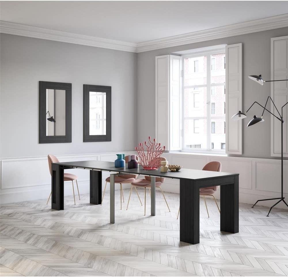 Mobili Fiver, Easy, Extendable Console Table with Extension Leaves Holder, Ashwood Black, Laminate-Finished/Aluminium, Made in Italy