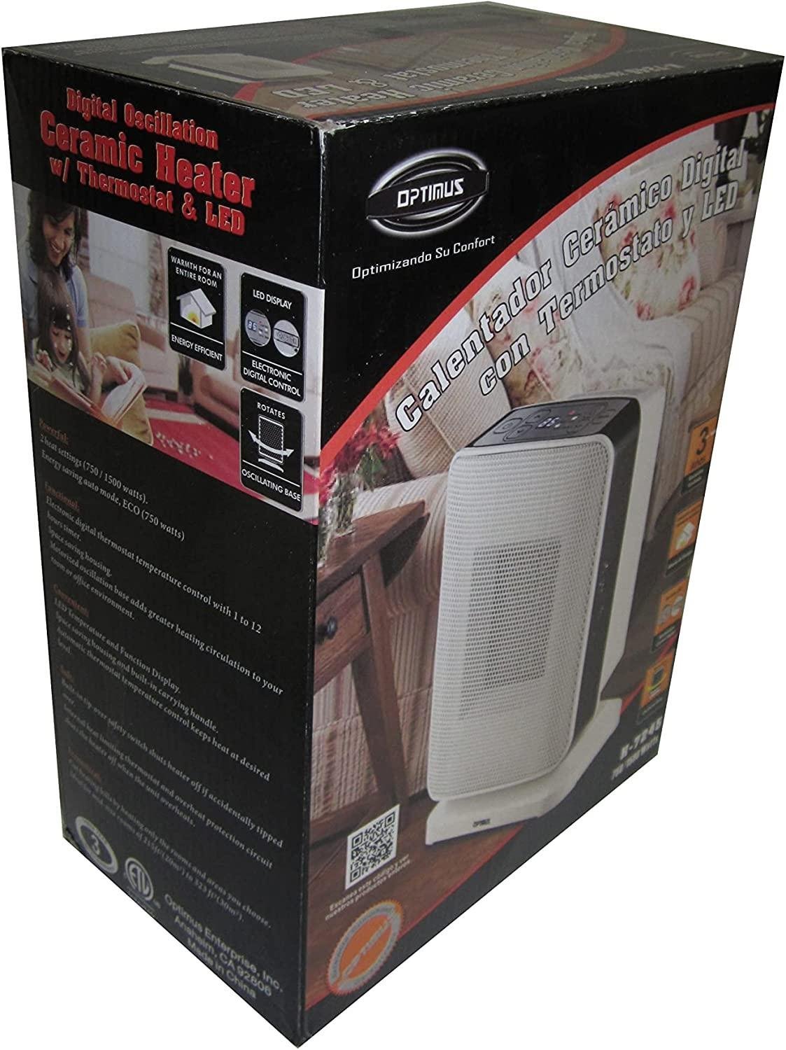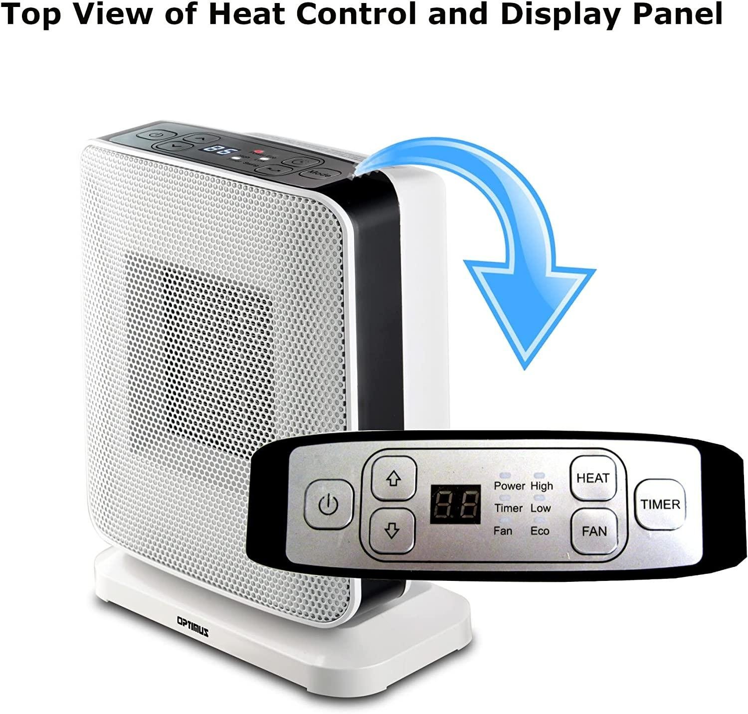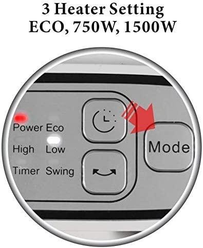 - 2 Heat Settings (750 and 1500 watts) and ECO (500W)