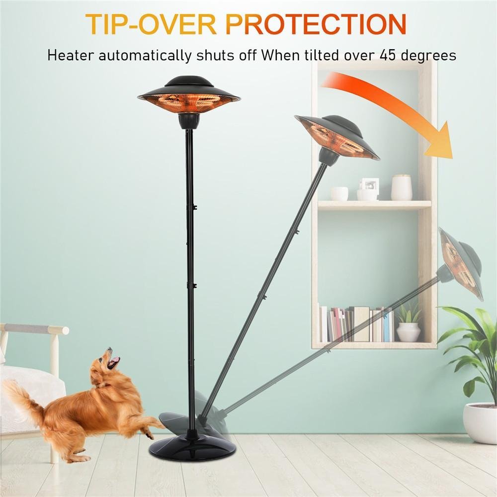 - [Tip-Over Protection]- This outdoor heater has a stable round base to avoid dumping. What’s more, it is equipped with a tip-over protection function. When the heater titles more than 45 degree angle, it will automatically cut off the power. So you do not need to worry about child or pet accidentally hitting it, or strong wind in winter blowing it down and cause safety hazards.