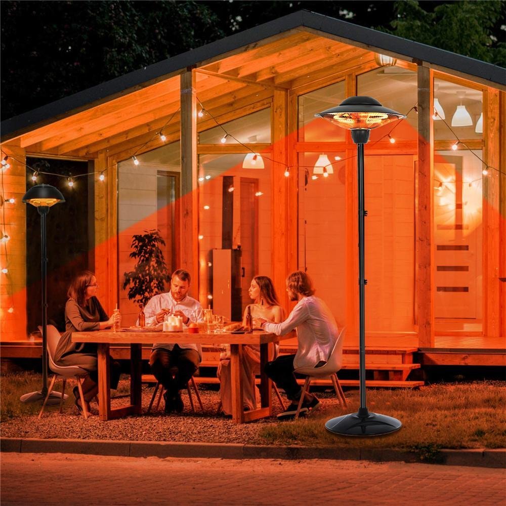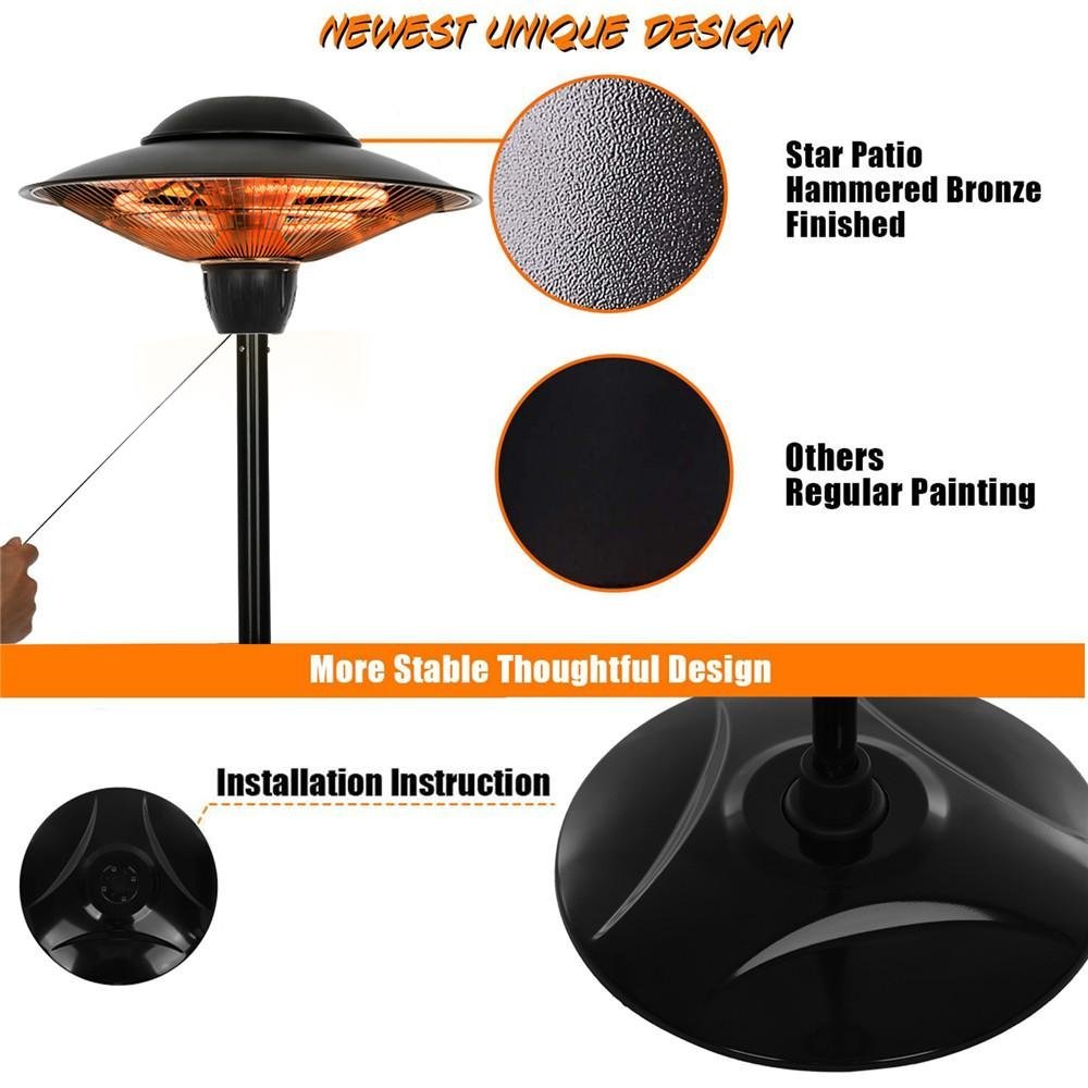 - [High Efficiency& Energy Saving]-This electric patio heater adopts advanced carbon fiber infrared heating technology, which generates large heat instantly without any noise, and can continuously offer sunshine-like warmth. Compared with traditional propane heaters, this heater saves 30%-40% energy and no gas or other flammable fuel needs, totally environmentally-friendly.