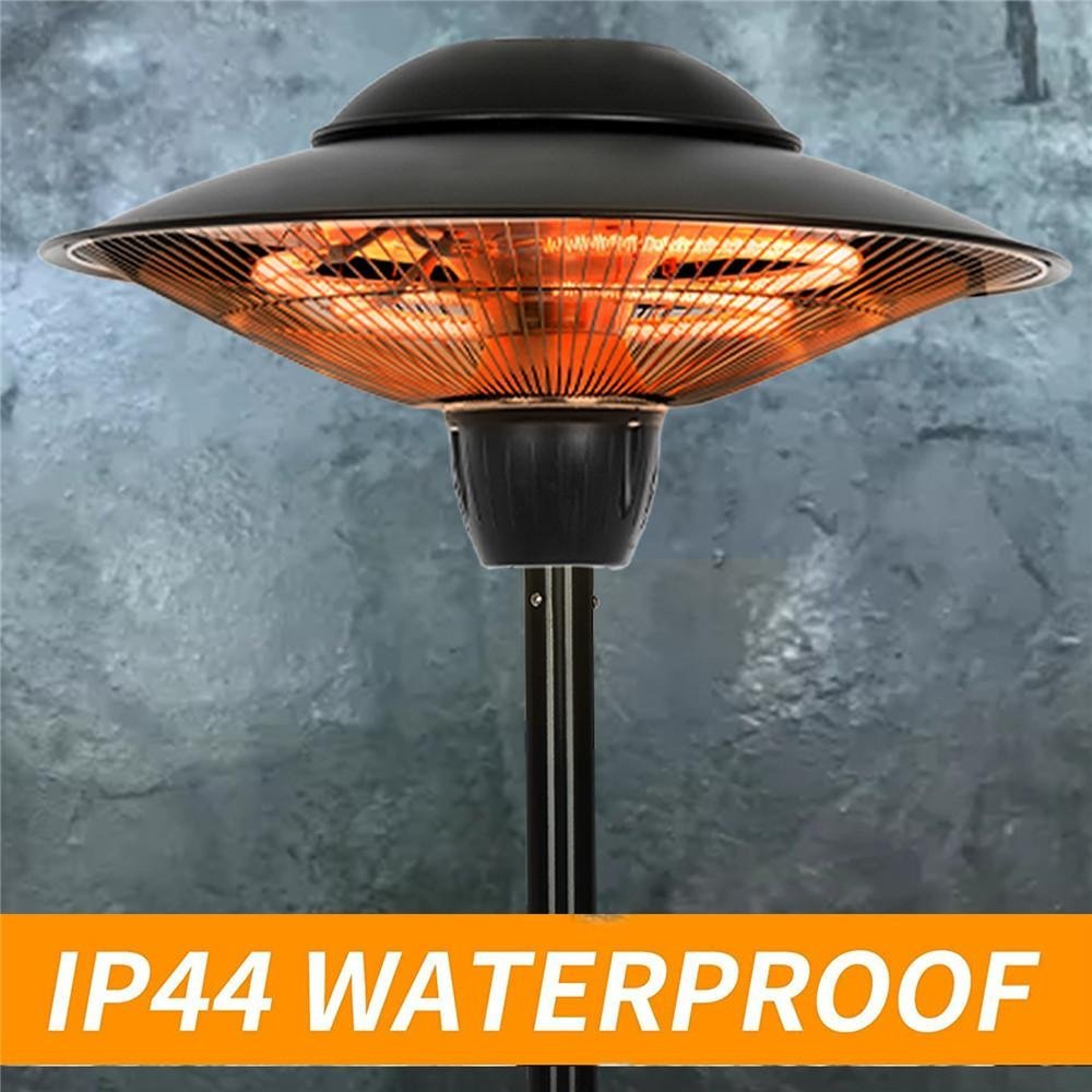 - [High quality & Waterproof]- This patio heater is made of high-quality metal and passed ETL certification. IP44 rated provides water and dusty resistance. It is an ideal electric outdoor heater for courtyard, balcony, garage, garden, BBQ, outdoor cafe and restaurant. This infrared heater can be used not only outdoor, but also indoor, it can resist the cold and bring you warmth.