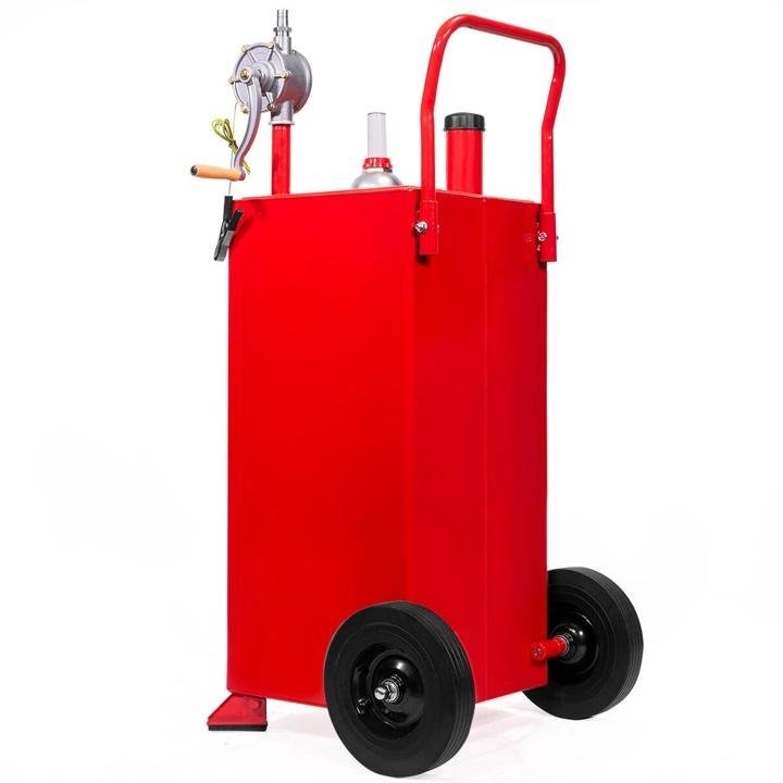 This 30 gallon gas caddy is perfect for storing fuel for automobiles, gas powered lawn and garden tools, motorcycles/ATVs and much more. The large capacity tank allows you to store up to 30 gallons of fuel and is easily transported with the built-in wheels. This caddy is safe for storing gasoline, diesel, kerosene and even bio diesel. This 30 gallon gas caddy is perfect for use at home, shop or on the go.