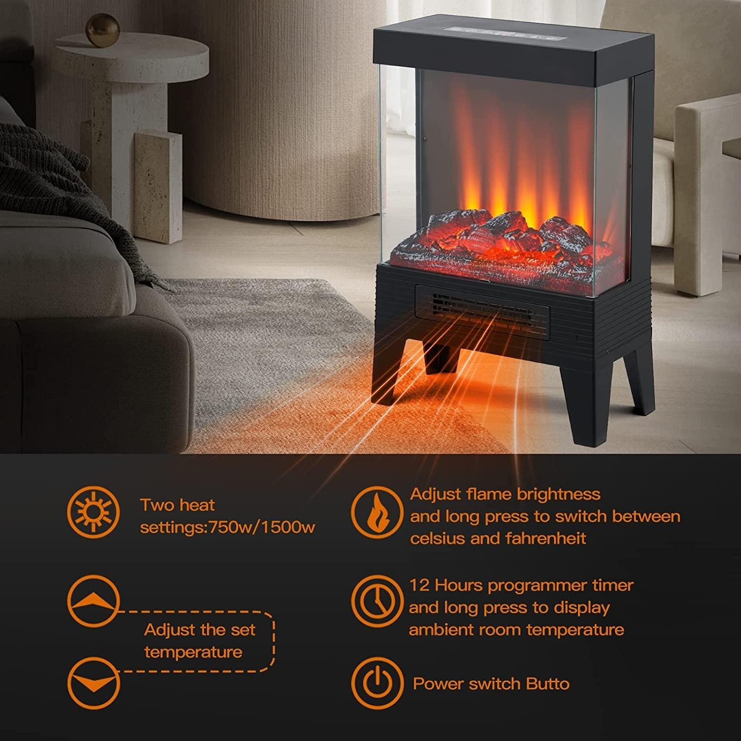 - 【Multi-Function Electric Fireplace】:1000W/1500W standing electric fireplace heater, and the built-in intelligent thermostatic control system will detect the real-time temperature of the space and automatically adjust to the temperature you set, which will always maintain a comfortable and warm.