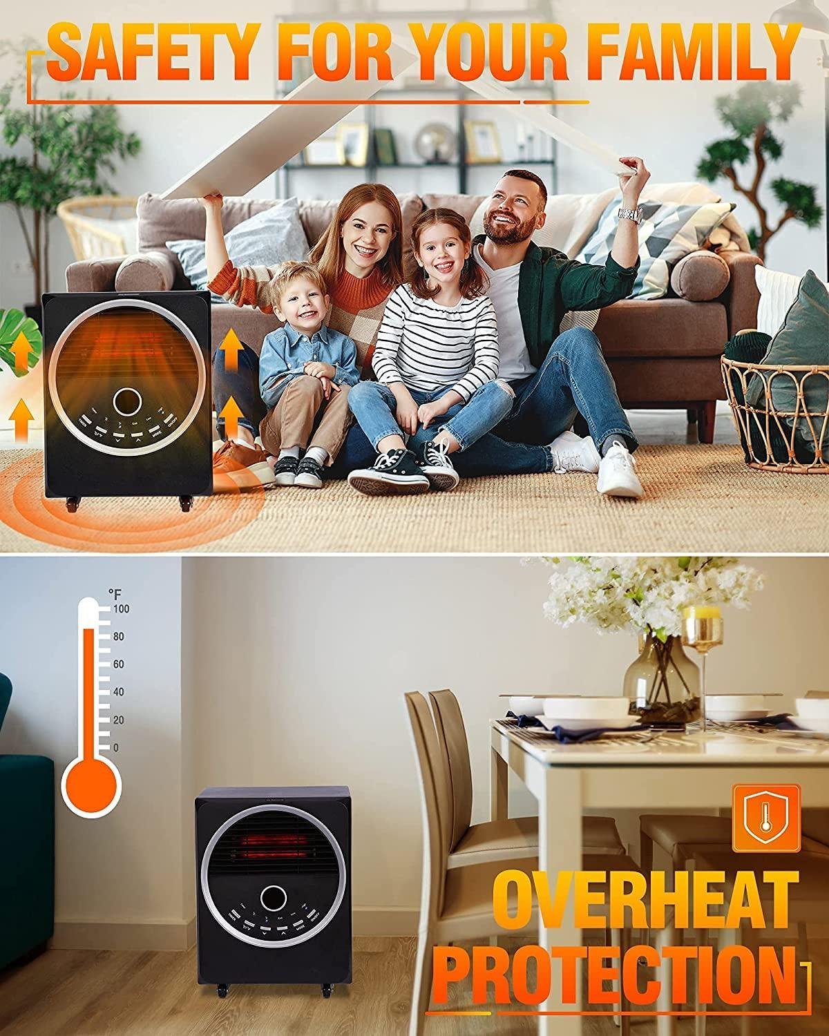 - 【MULTIPLE SAFETY FEATURES】: The electric space heater embraces tip-over and overheat protection functions to prevent safety issues. The room heater will be automatically turn off when it is accidentally tipped over or the temperature is too high. And the child lock function can avoid the heater from being accidentally engaged.